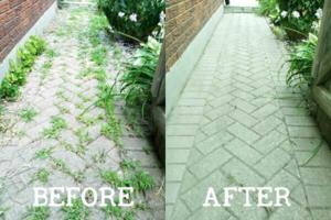 Přírodním pleveložroutem krásně zbavíte plevele i spáry ve venkovní dlažbě. Co potom s uschlým plevelem? Vystříkejte ho vysokotlakým čističem. Vyčistěné spáry znova zapískujte.