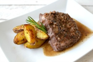 Maso podávejte na talíři s přílohou, přelité omáčkou.