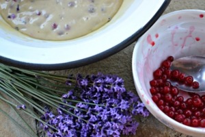 Těsto naplňte do tříčtvrtin výšky papírových košíčků. Nahoru ještě dejte trochu kuliček rybízu a posypejte výborným a voňavým kořením Čepička z květů. Já jsem na část mufinů použila domácí levandulový cukr a bylo to taky skvělé. Dokonce jsem trochu květů levandule přimíchali i do poloviny těsta. Nebojte se vyzkoušet.