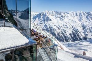 Další neuvěřitelné výhledy hned do tří směrů na italské Dolomity, nejvyšší německou horu Zugspitze nebo údolí, kde byl nalezen slavný lovec Ötzi, nabízí futuristická restaruace ICE Q (http://www.soelden.com/iceq). Na Söldenském ledovci ve výšce 3048 metrů nad mořem otevřeli v prosinci 2013. Je to jedna z nejvýše položených gourmet restaurací v Alpách. Pro svůj provoz používá ledovcovou vodu a nemá topení. Pro vyhřívání je na povrchu celé stavby natažena speciální fólie, která absorbuje teplo a převádí jej do termosystému restaurace. V roce 2014 a 2015 se tu navíc natáčel další film s Jamesem Bondem s názve Spectre! Takže kdo jej již viděl může si udělat obrázek o tom, v jak krásném horském prostředí se tahle skvěá restaurace nachází.
