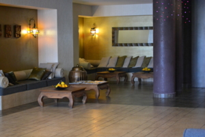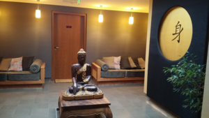 Vybraný hotel se chlubí tím, že je zařízený podle feng-šuej. Přiznám se, že i když mě tento směr jednu dobu hodně zajímal, tak to nejsem schopná posoudit. Atmosféra hotelu je ale hned na první otevření dveří úžasná. Voní tady wellness (nevím jak jinak to říct, není to chlor, je to prostě vůně olejíčků a termální vody). Všude je tlumené osvětlení. To i na pokojích. Večer máte relaxovat, ne si svítit do očí. Jsou tady lampičky, které vytváří příjemné přítmí a lehce exotickou atmosféru.