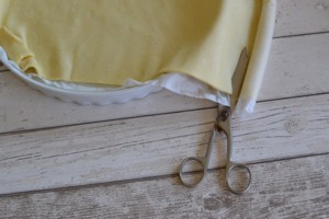 K upravení velikosti přímo na formu vám jednoduše pomůžou čisté nůžky, kterými ustřihnete papír i těsto zároveň, do požadovaného tvaru.