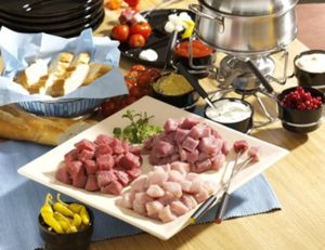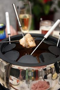 Sýrové fondue zná snad každý. Stejně jako čokoládové. V nádobě na fondue se ohřívá rozpuštěný sýr nebo čokoláda. Namáčí se kousky bagety nebo ovoce. Je to naprosto dokonalý způsob, jak strávit hezký večer s přáteli. Méně známá je však verze s masem a rozpáleným olejem.