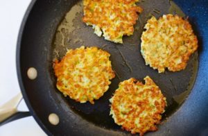 Ze směsi smažte placky, v rozpáleném oleji. Z každé strany asi 3 minuty. Dejte na talíř s papírovým ubrouskem, který odstaje přebytečnou mastnotu.